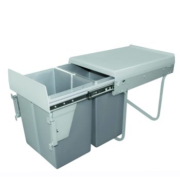 Bote de basura ecológico para interior de gabinete ideal para la separación y reciclado de basura. Herraje con tapa integrada para conservar los malos olores dentro del contenedor. Durabilidad y resistencia a líquidos.
