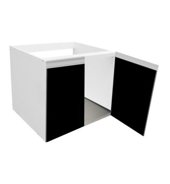 El gabinete fregadero incluye la base de aluminio para evitar que cualquier líquido dañe la superficie del mueble, es ideal para colocar botes de basura ecológicos o porteros de limpieza. Disponible en tonos maderas elegantes.